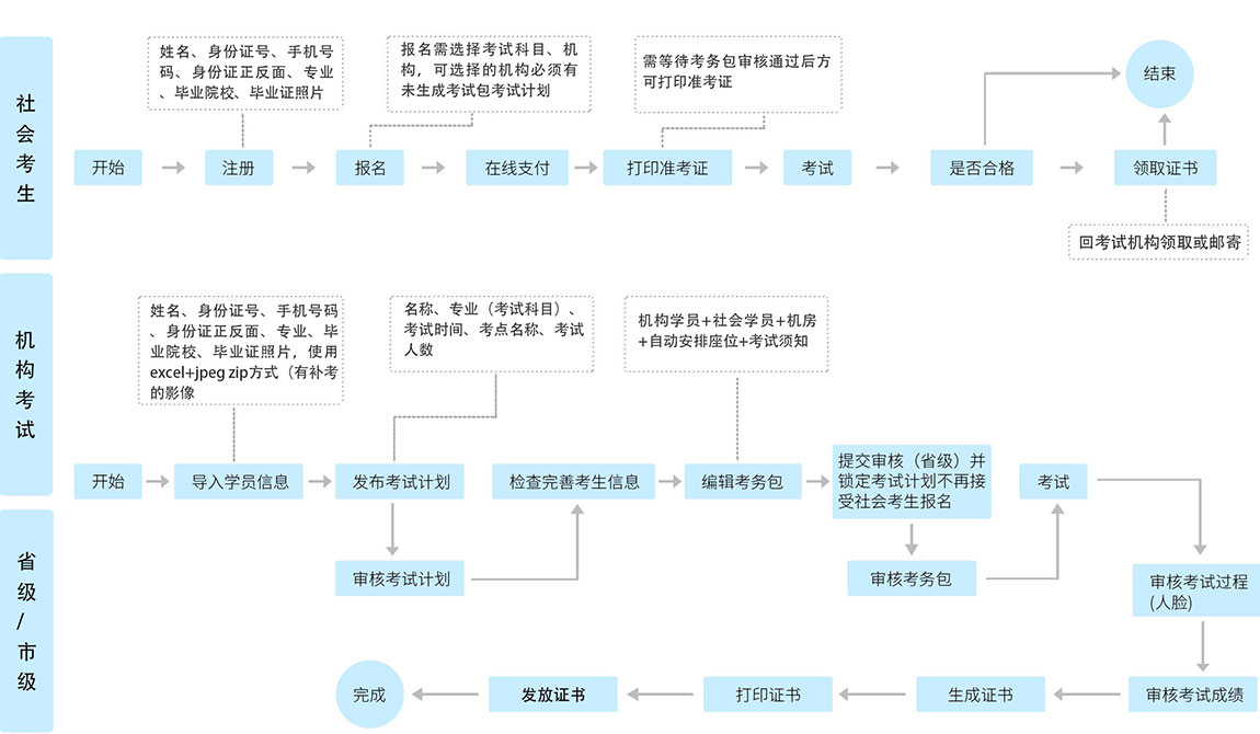 智慧考試系統(tǒng)主要是由考生端、考試端、機(jī)構(gòu)端、監(jiān)管端、管理端等組成,對線上考試進(jìn)行綜合管理的系統(tǒng)平臺。該平臺將考生培訓(xùn)、報(bào)名、繳費(fèi)、考試安排、考務(wù)管理等考試流程信息統(tǒng)一管理,并從各個(gè)維度幫助企業(yè)立體化分析考生考試等數(shù)據(jù),極大提升了考試流程的規(guī)范化、標(biāo)準(zhǔn)化、信息化,提升了考試效率,提升了考生的考試體驗(yàn)。